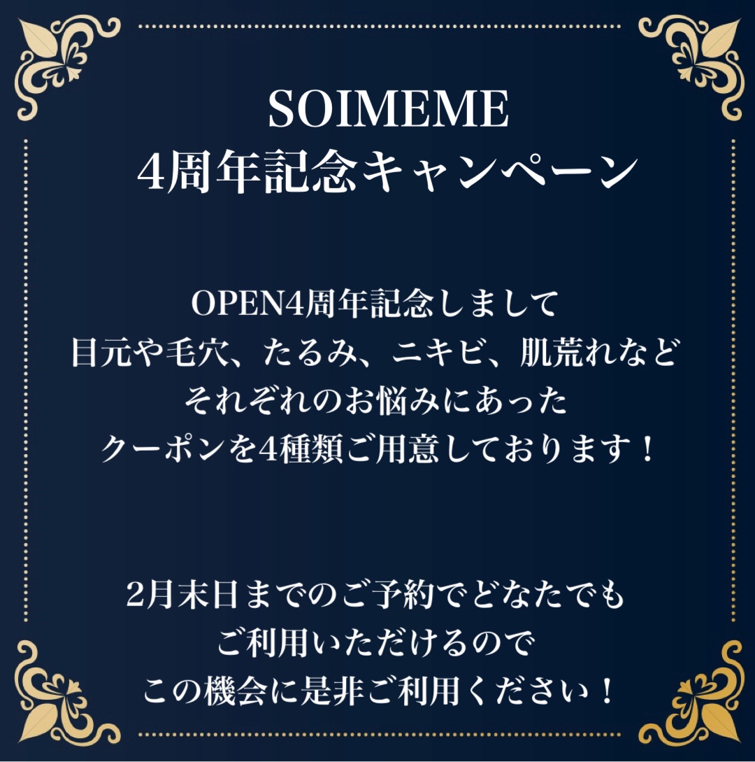 ソワメームでは2月に迎える4周年を記念しまして周年キャンペーンを開催中です!